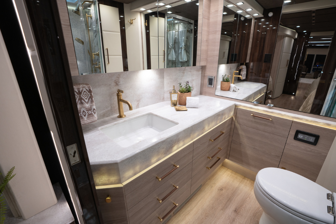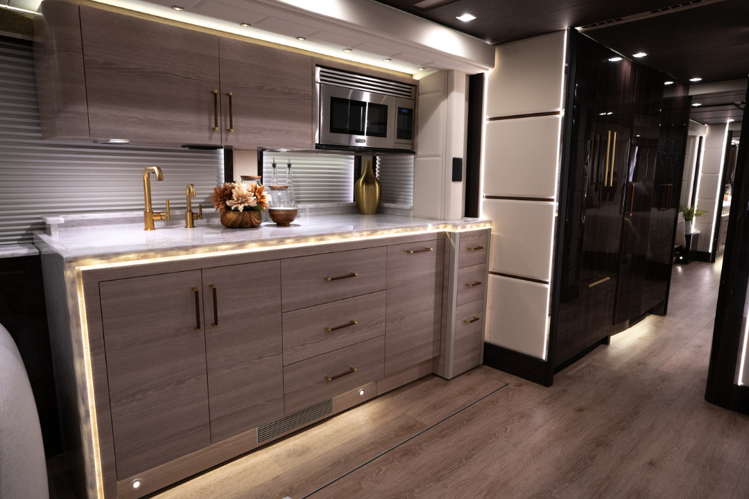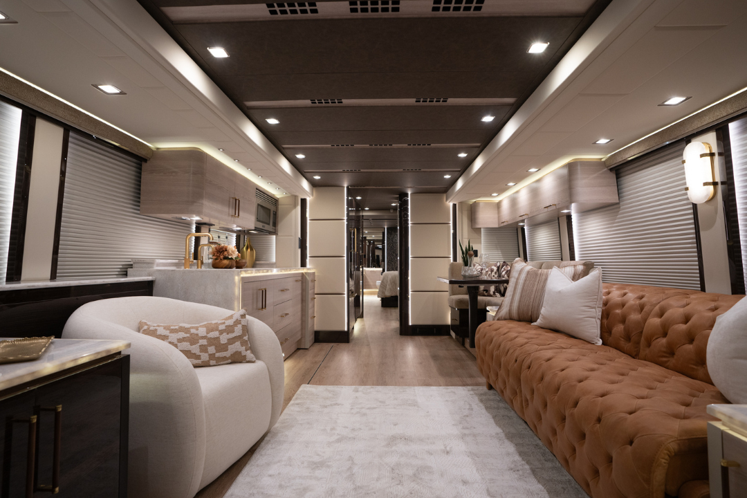 We’ve perfected a tasteful, modern design aesthetic through decades of experience converting Prevost coaches.