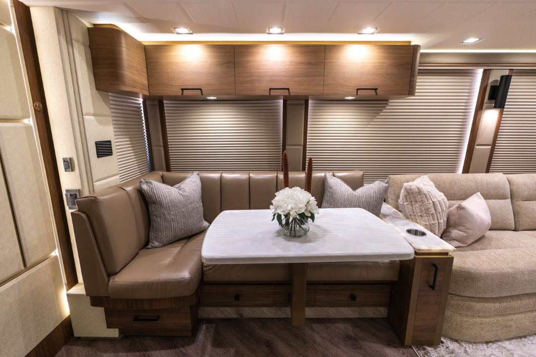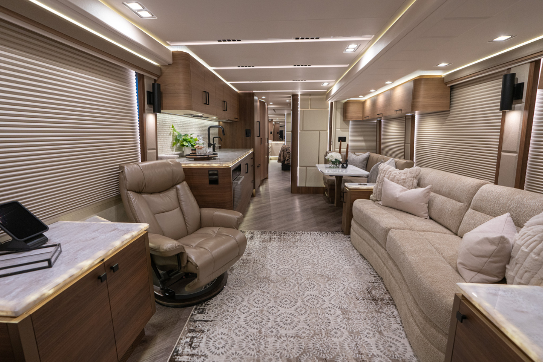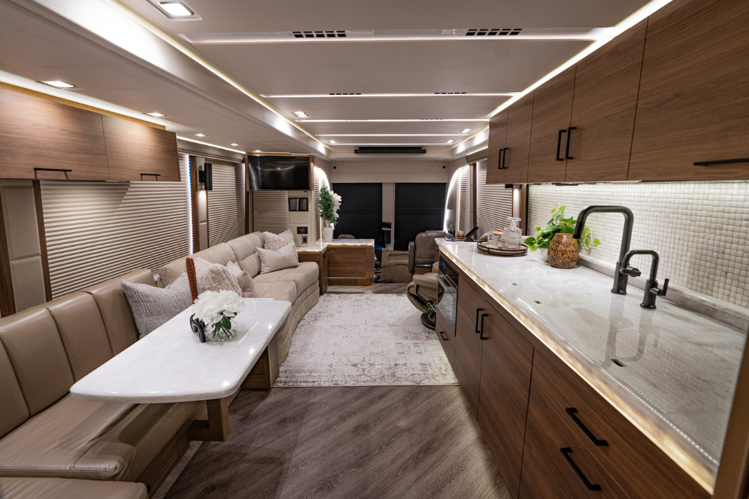 We’ve perfected a tasteful, modern design aesthetic through decades of experience converting Prevost coaches.