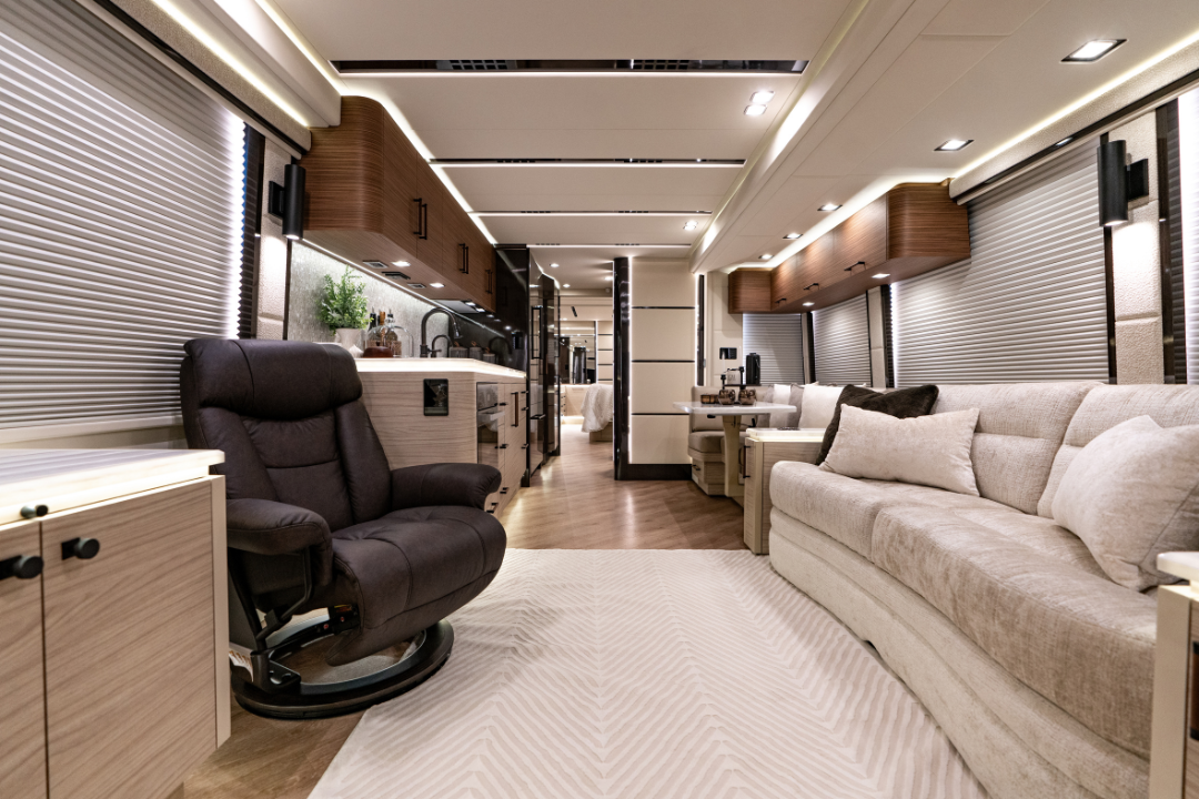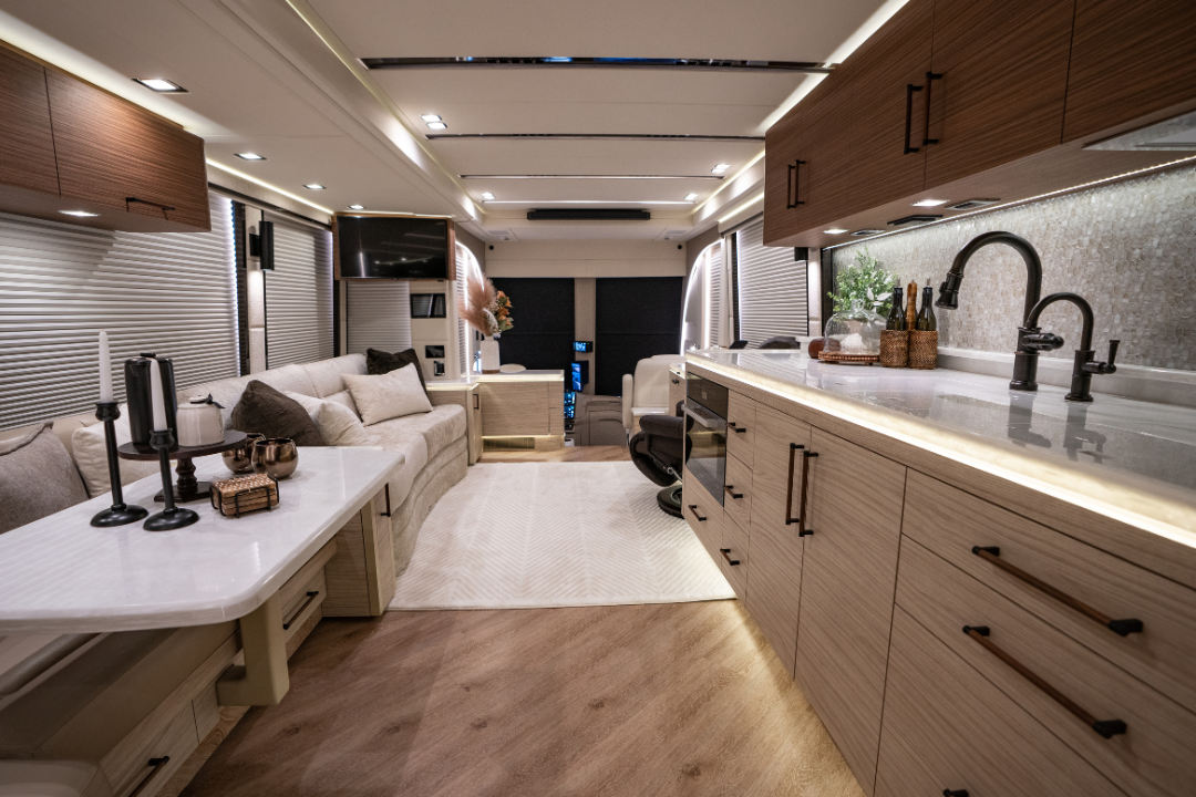 We’ve perfected a tasteful, modern design aesthetic through decades of experience converting Prevost coaches.